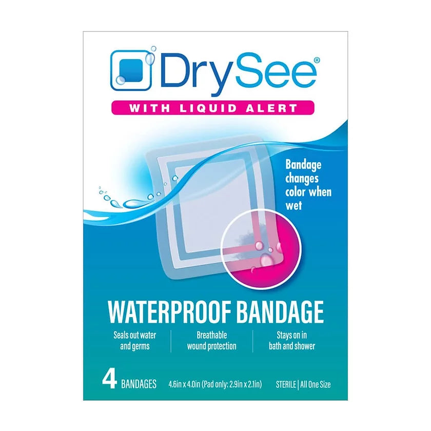 DrySee’s liquid indicating technology provides a visual moisture alert so doctors and patients alike, can tell if the bandage has been compromised from the exterior or the center pad has become saturated, and remove and replace it accordingly.