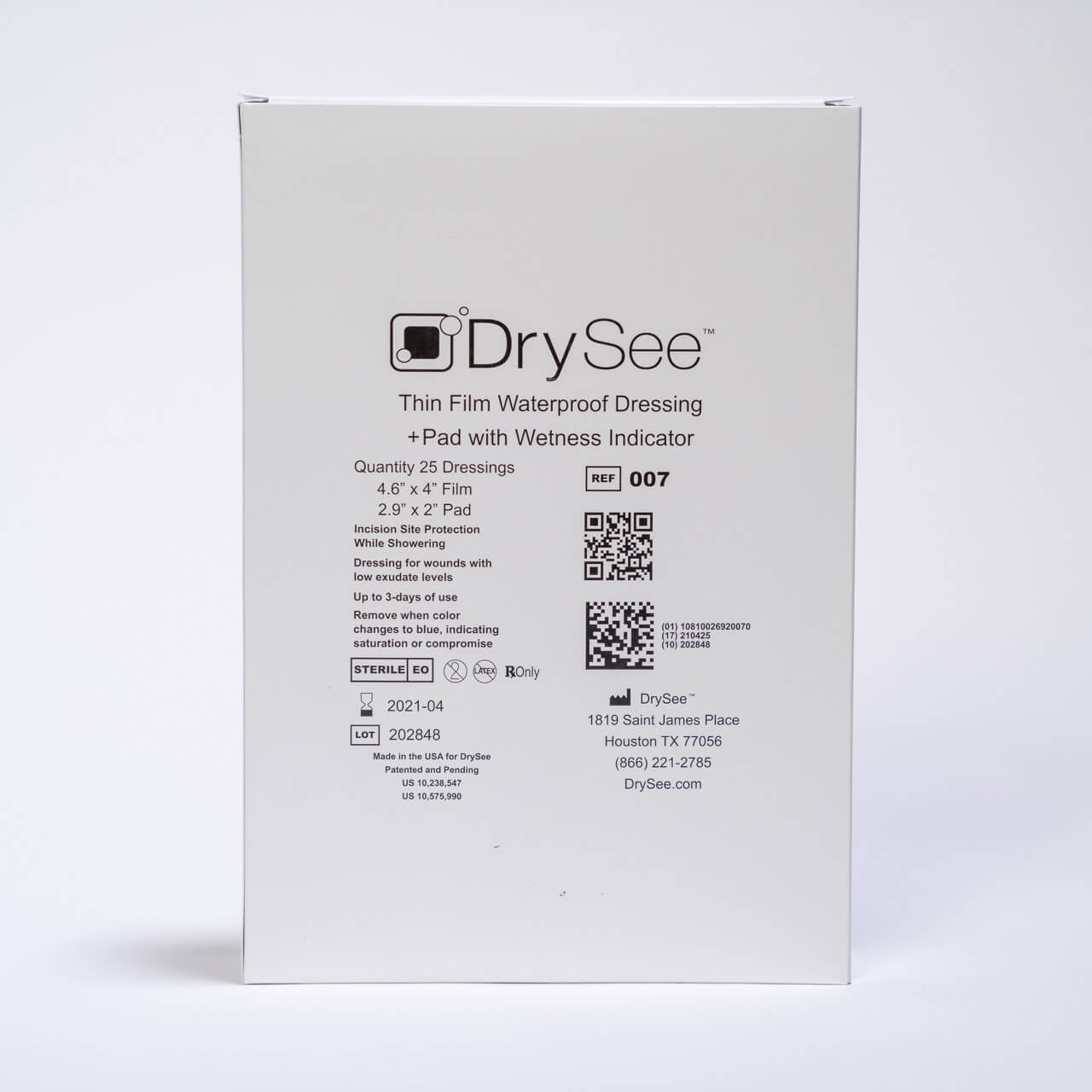 DrySee bandages use a sterile, non-adhering cotton center pad that provides absorption for low exudate wounds and is built with liquid indicating technology.